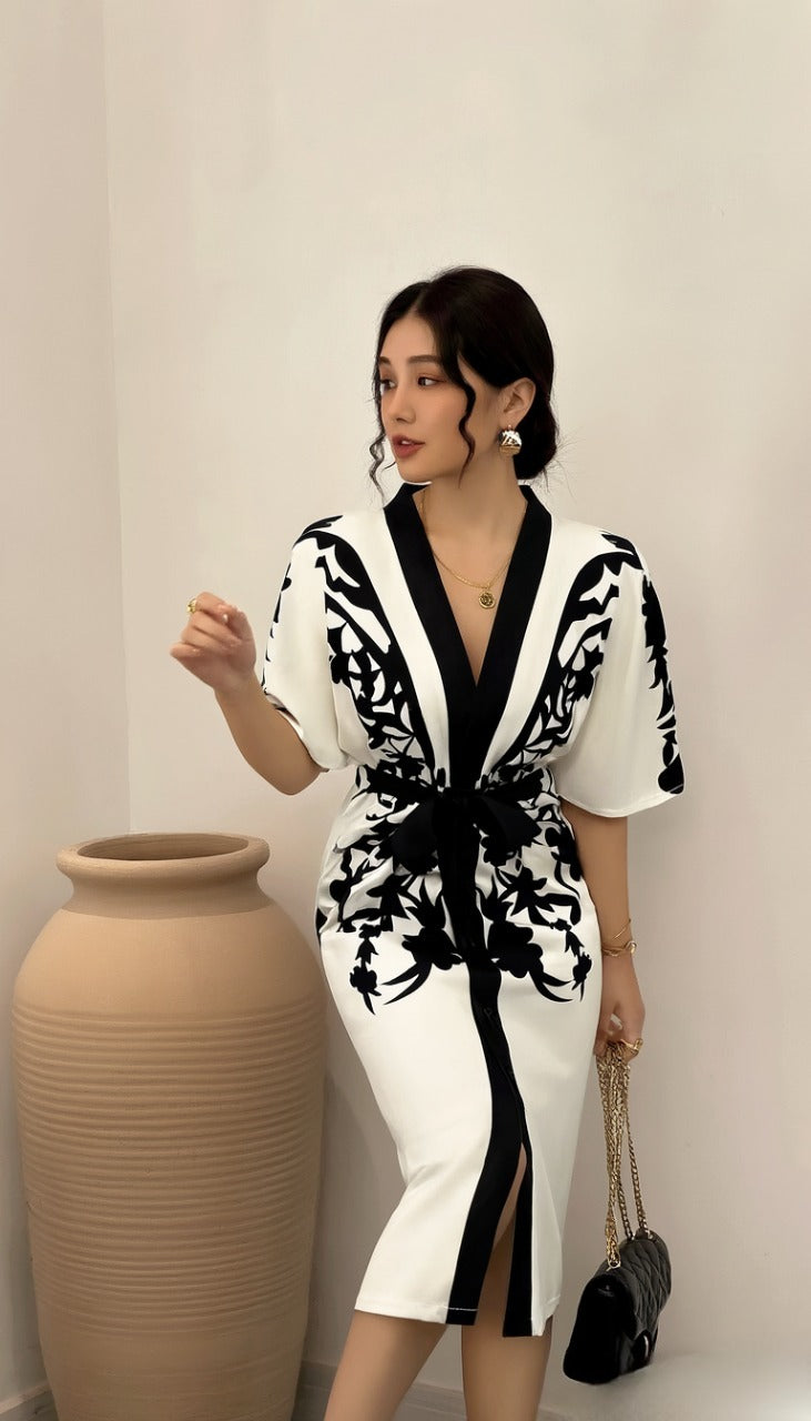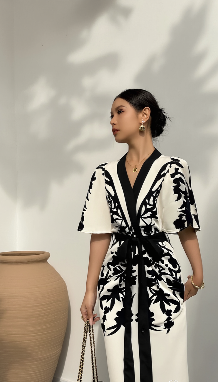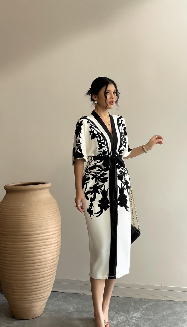 فستان مطبوع عرقي بوهيمي بتصميم ريترو