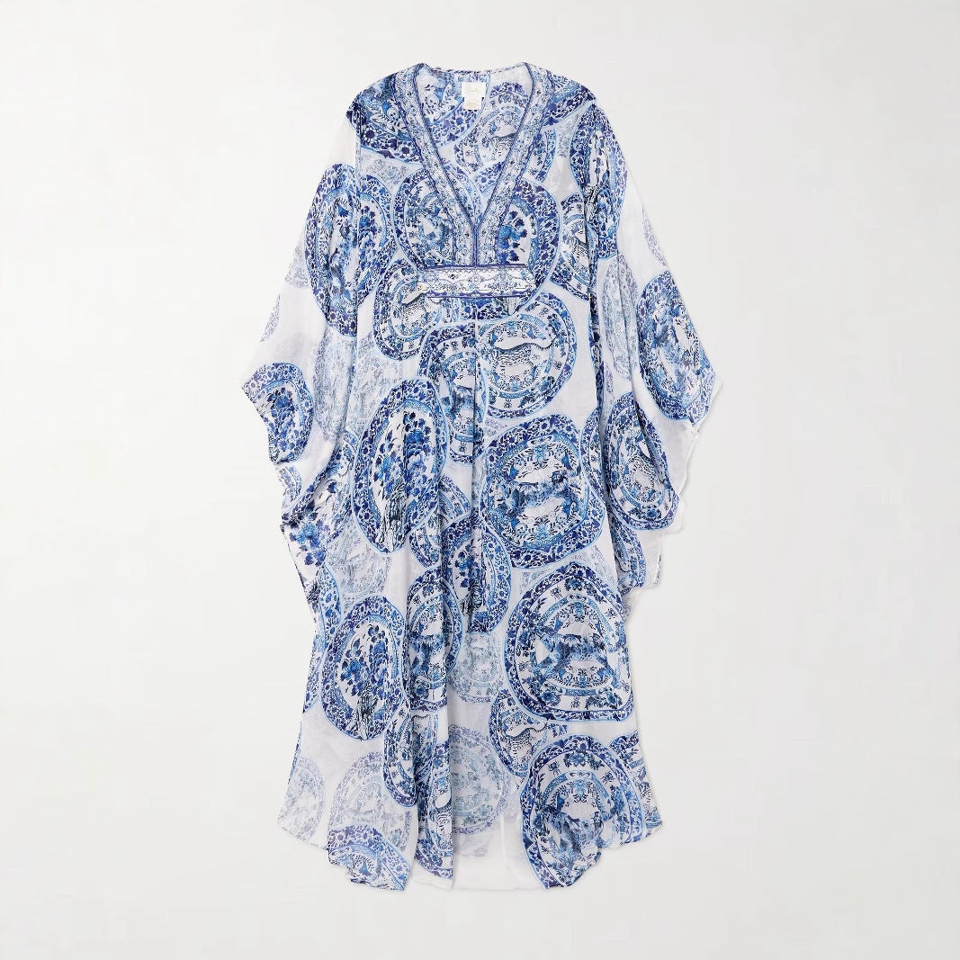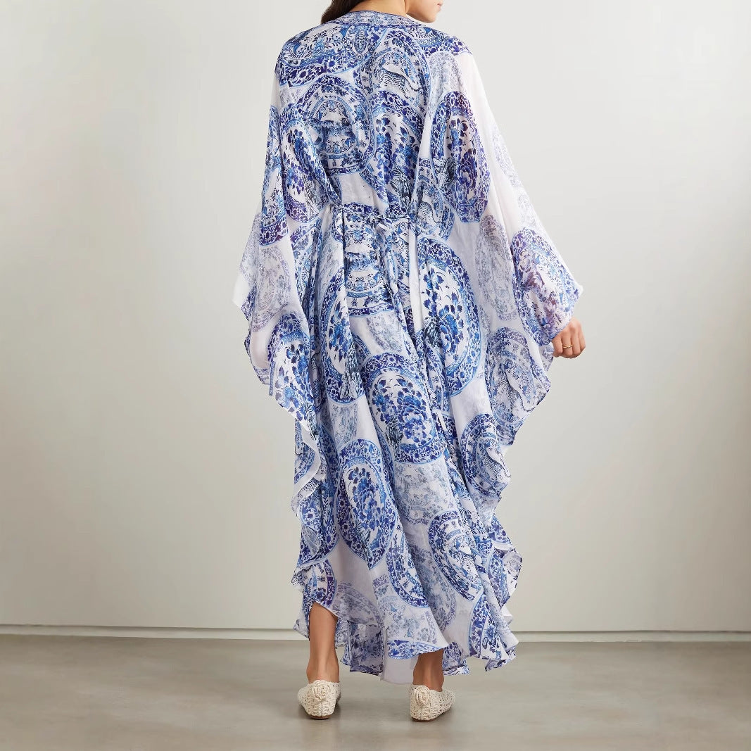 فستان نسائي مطبوع فضفاض بمقاس كبير وفتحة رقبة على شكل حرف V