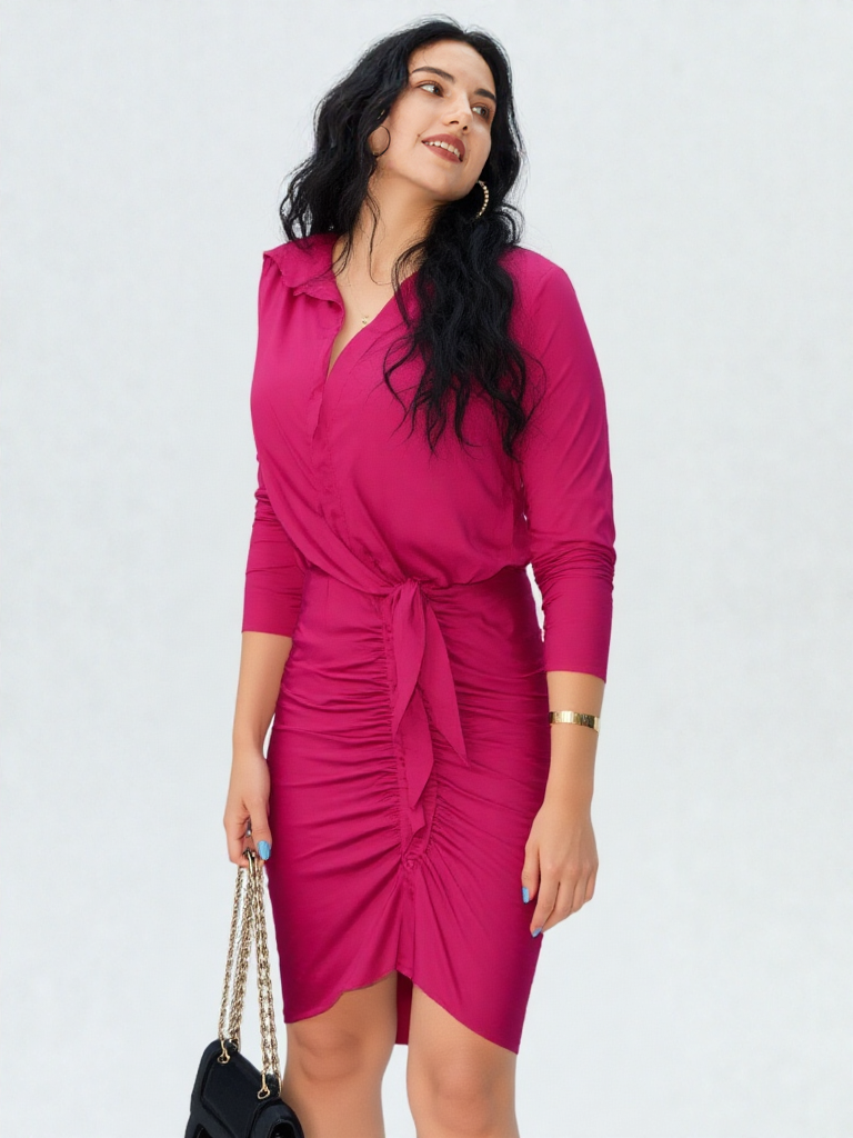 فستان نسائي بأكمام طويلة ولون سادة برباط وقميص أنيق للحفلات