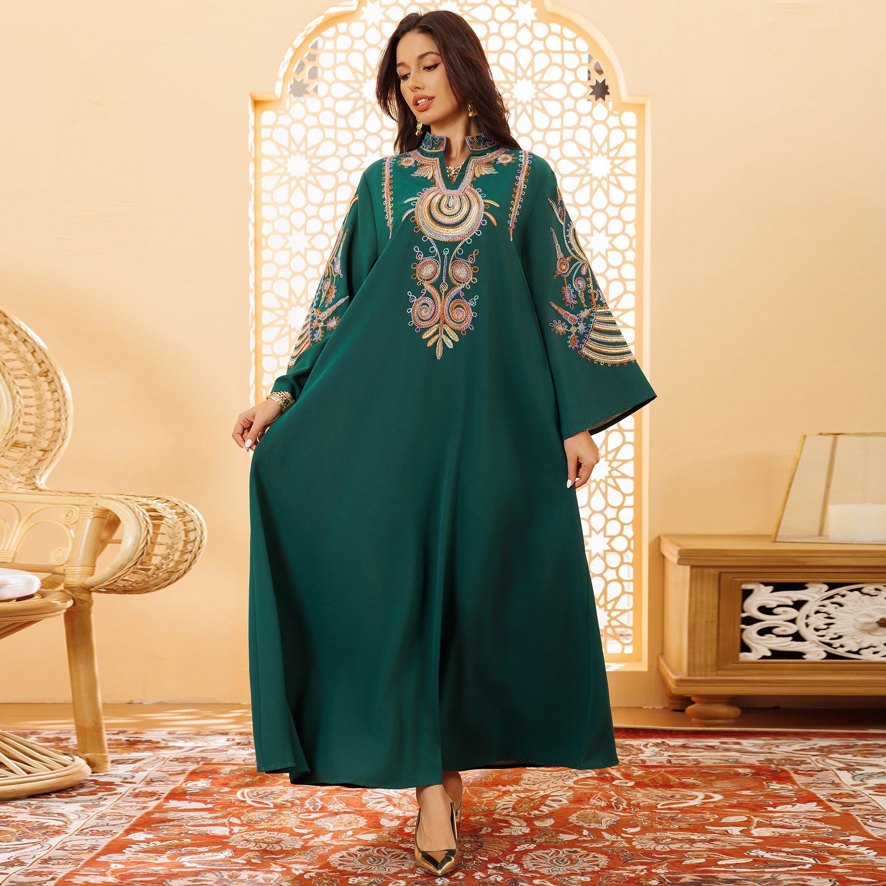 فستان نسائي مسلم مطرز بحبل