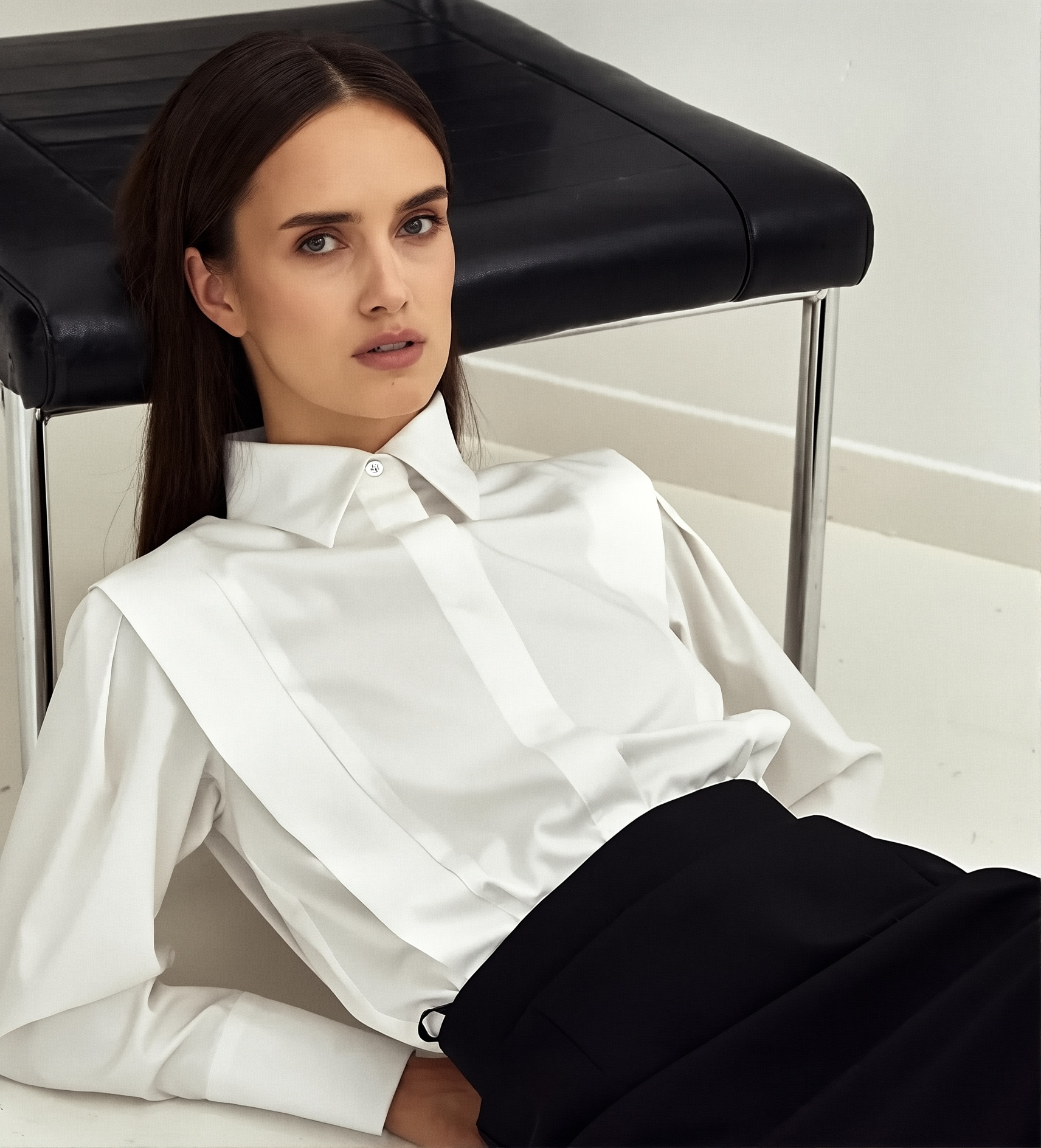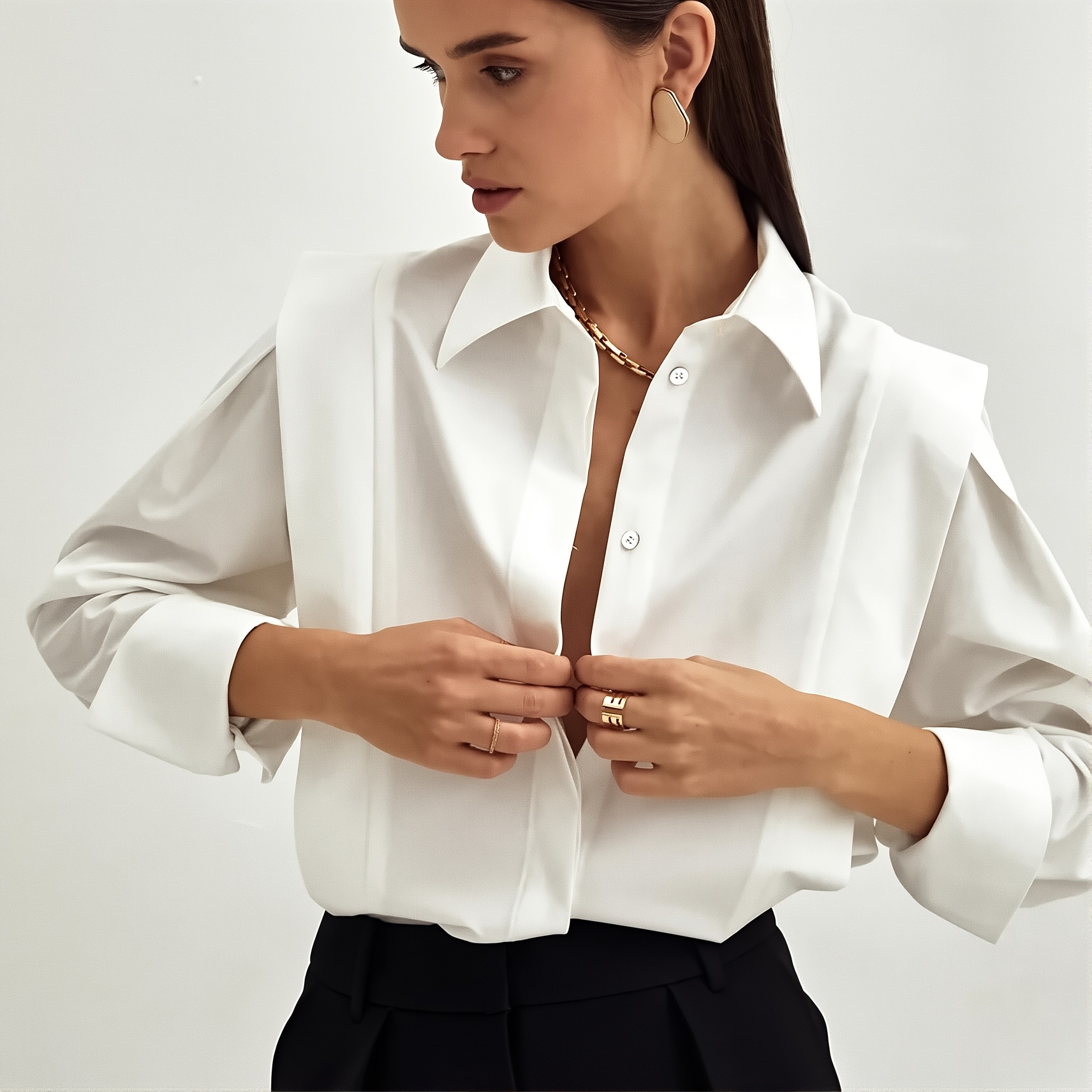 French Commuter Right Angle Shoulder Slim Shirt Women's Summer Long Sleeve Stitching High-end Sense