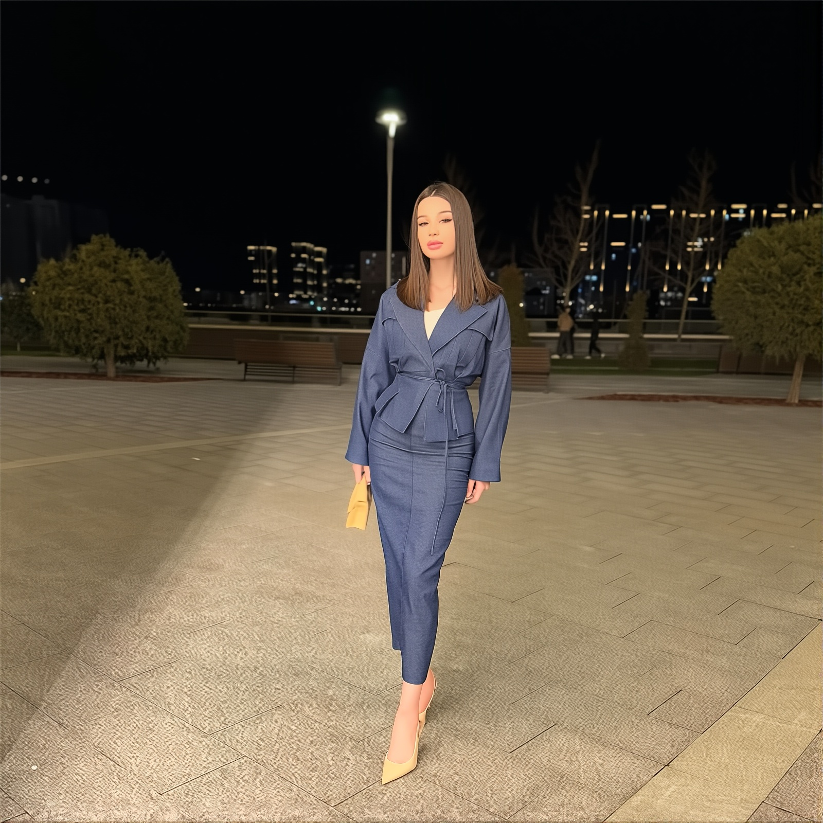 Women's New Lace-up Long Sleeve Elegant Long Sleeve Skirt Suit