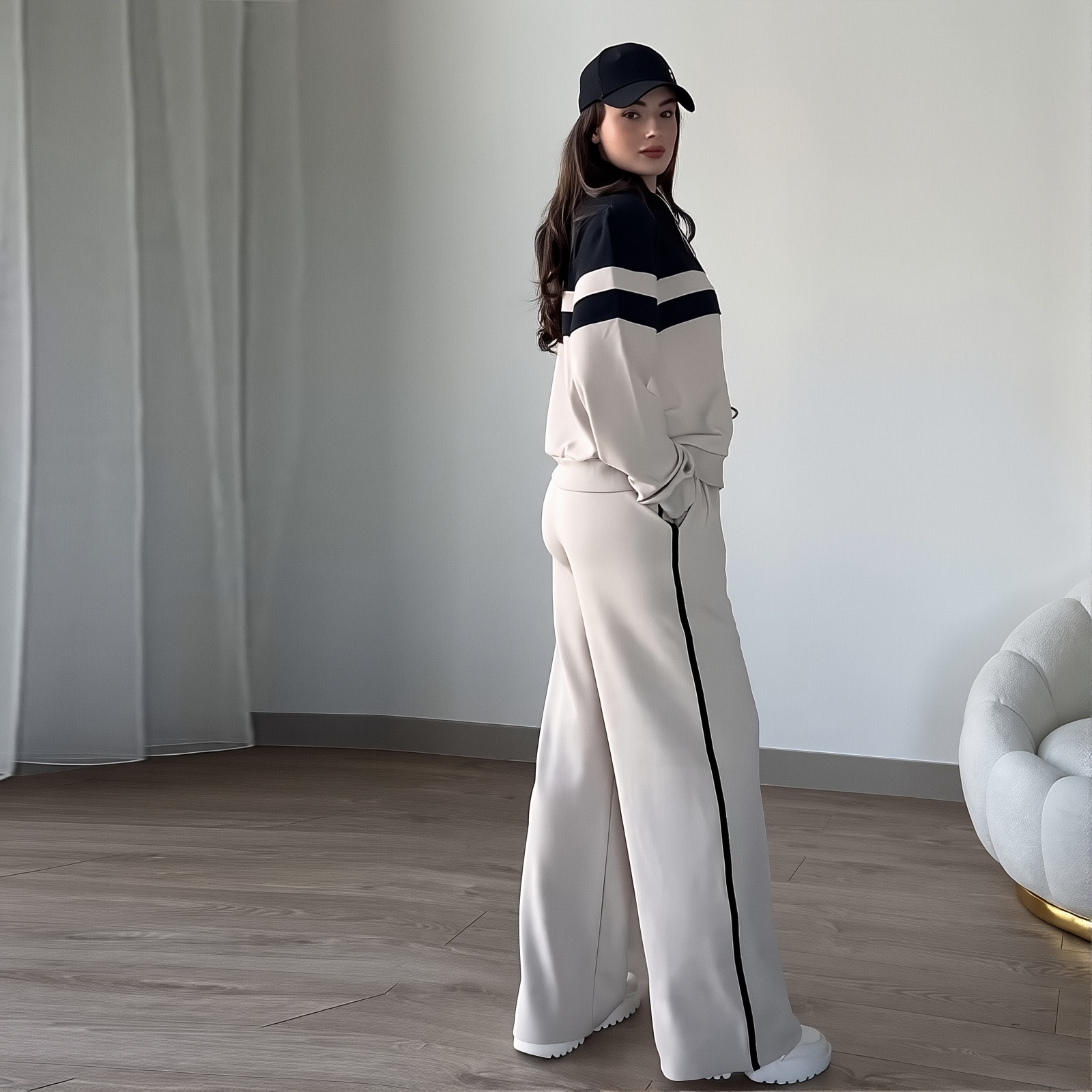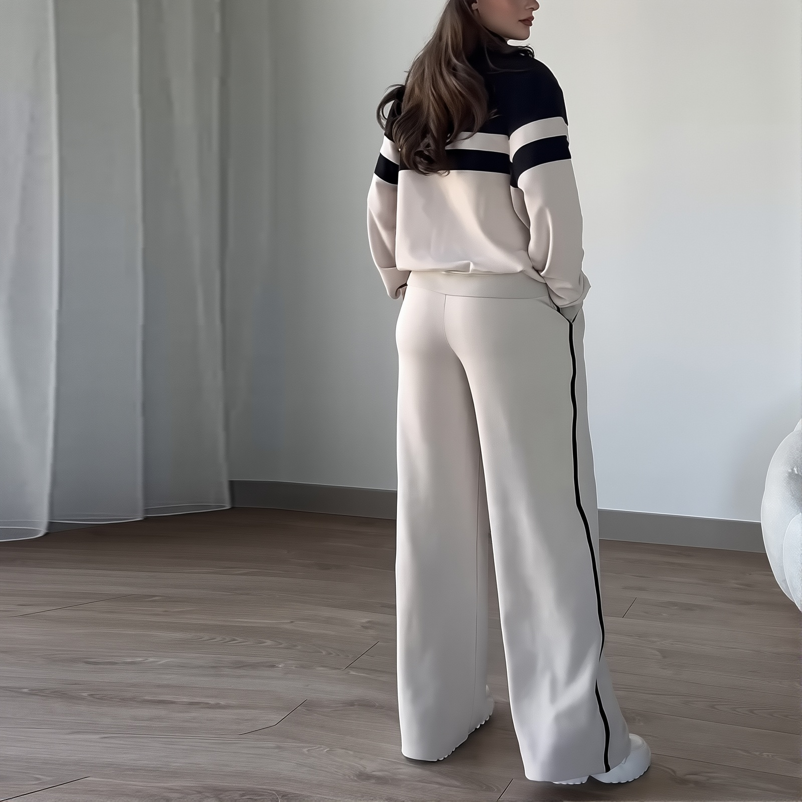 2025 Women's Clothing New Zipper Top Casual Loose Sports Two-piece Set