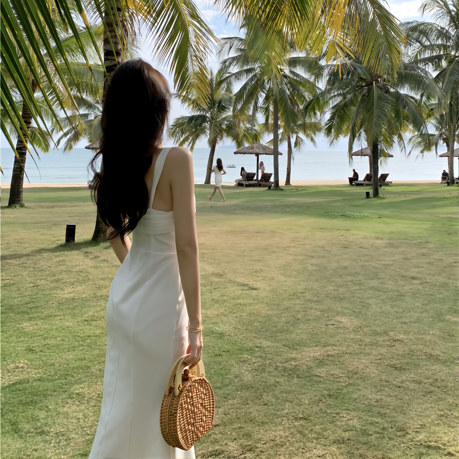 The French Riviera Vacation Dress: White Pearl & Elegance