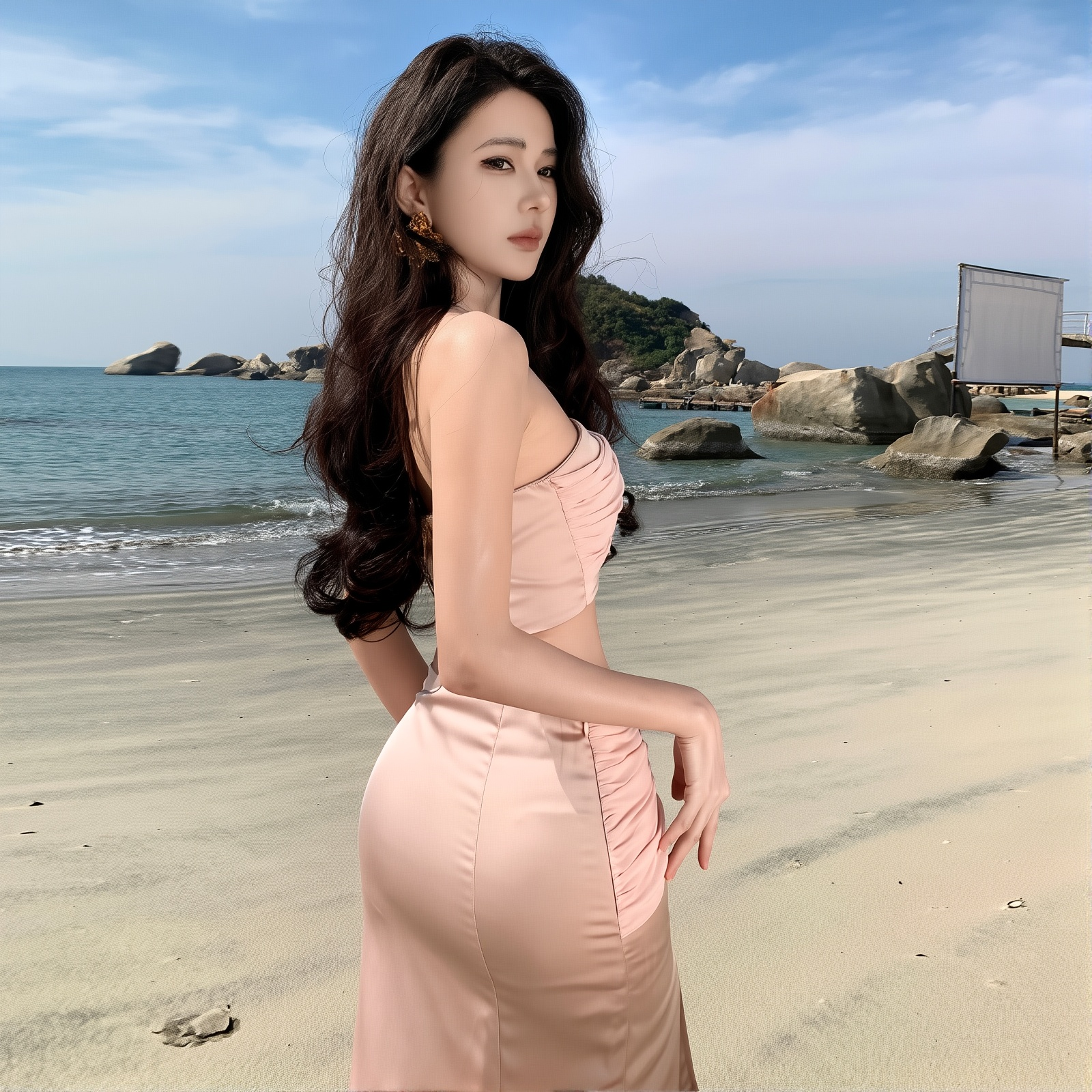 Pink Satin Strapless Gown with Bow Detail | French Riviera Beach Dress