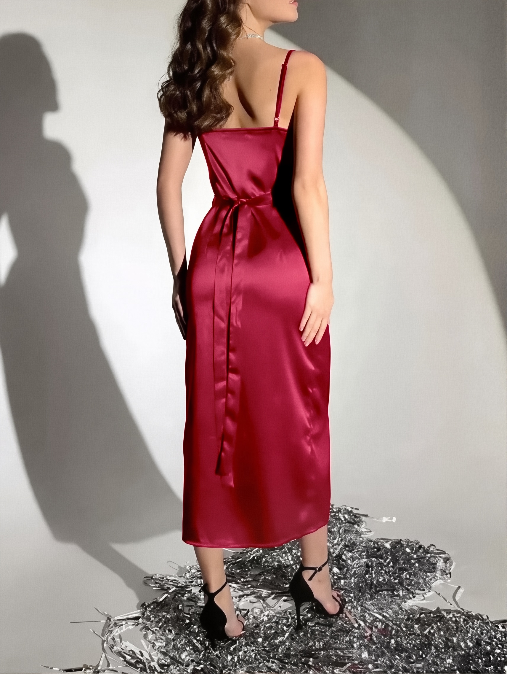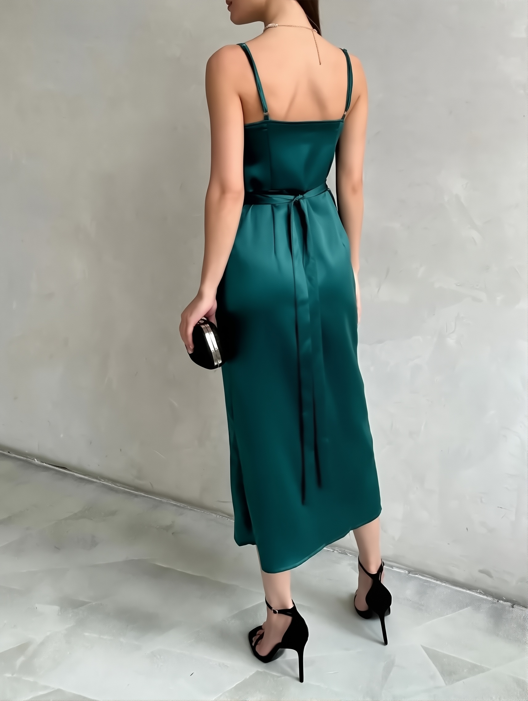 High-grade silky satin sling dress spring/summer wildberries Russian temperament dress