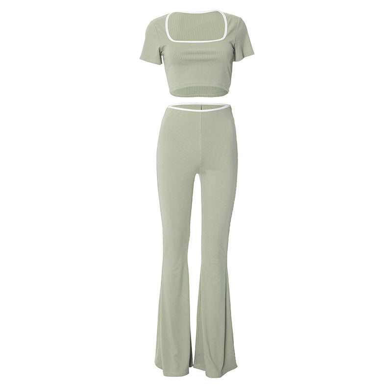 Women's Wear Spring And Summer Big Square Collar Short Navel Low Waist Micro Horn Slimming Knitted Suit